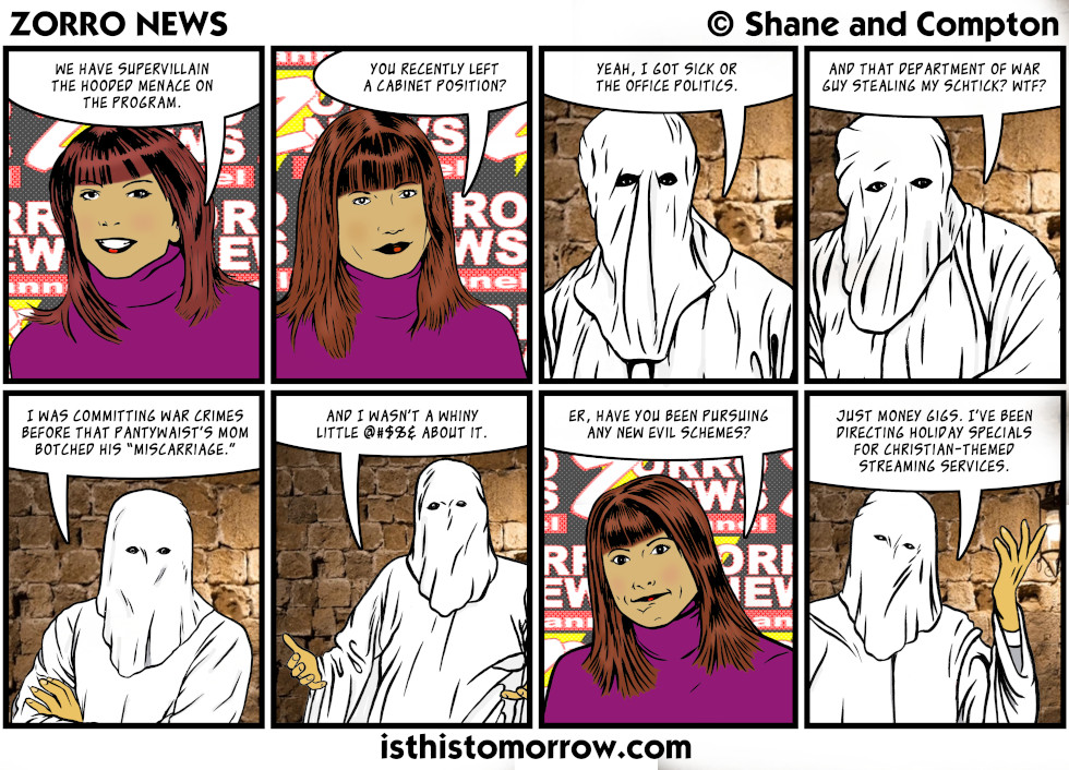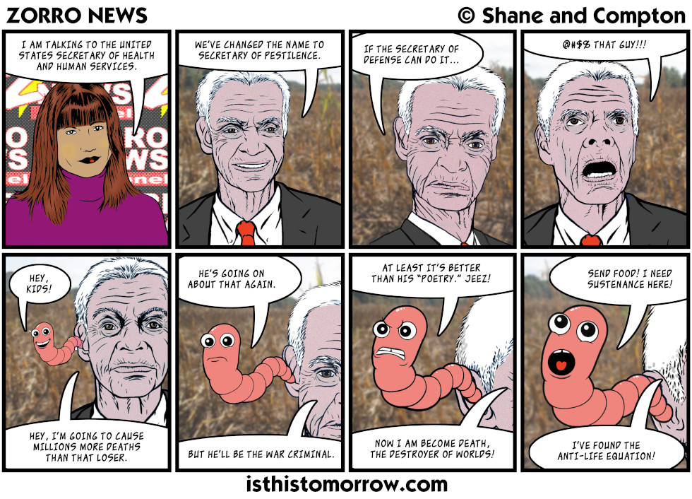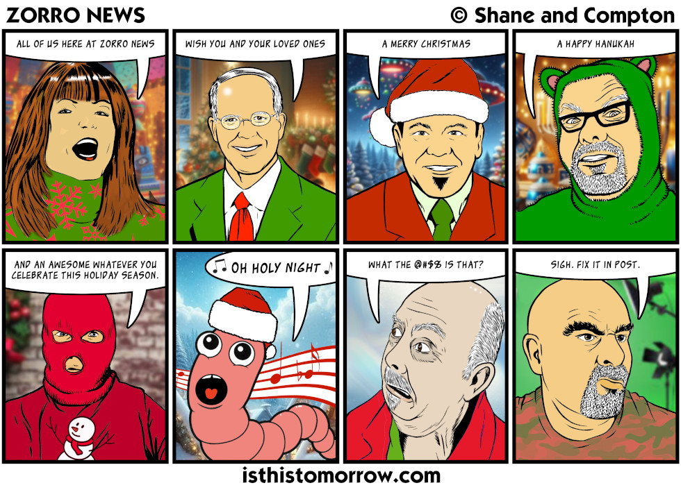 Seasoned Greetings Dec21 on December 21, 2025 at 1:04 pm Characters: John Q. Public III, Murph Davies, Senator Stroller, Stocky Bear, Terrorist, Travis Slaughter, Windy, Worm